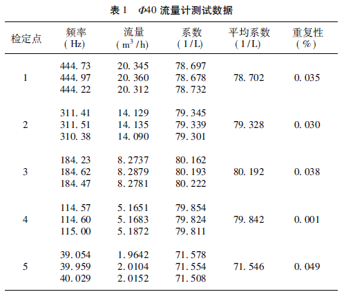 此次試驗測試選用兩臺色拉油流量計,口徑分別為Φ40、Φ25,主要考慮40 和25 口徑的流量計應用較多,同時流量銜接,更具有代表性。其主要參數(shù)如下: