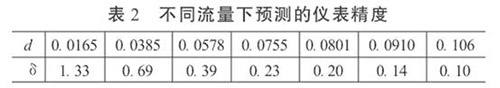 3.直管段長度和軟化水計量表精度的初步預測在工程設計中,根據流體性質、流量和雷諾數確定α和d值。這樣,按照式(5)就可以依不同的流量計精度要求,對直管段長度進行初步預測,或確定直管段長度后,對流量計的精度做初步預測。當δ= 0.2%時,不同流量下所需直管段長度見表1。